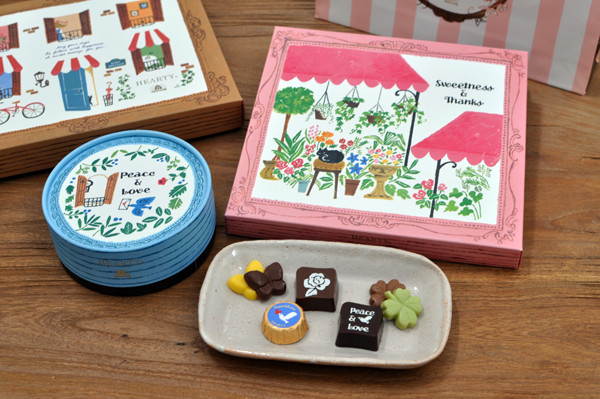 パッケージイラストを描いた、モロゾフのチョコレート。
