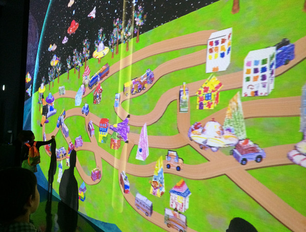 象形文字を触ると絵に変わったり、積み木を動かすと道路や川が現れたり…。