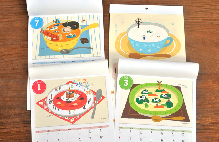 2007年の展示で描いたスープのイラストがカレンダーに採用されることに。
